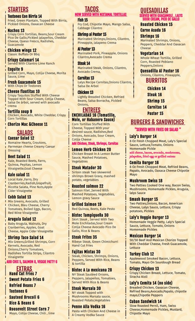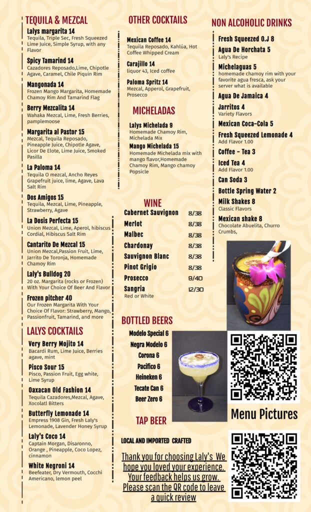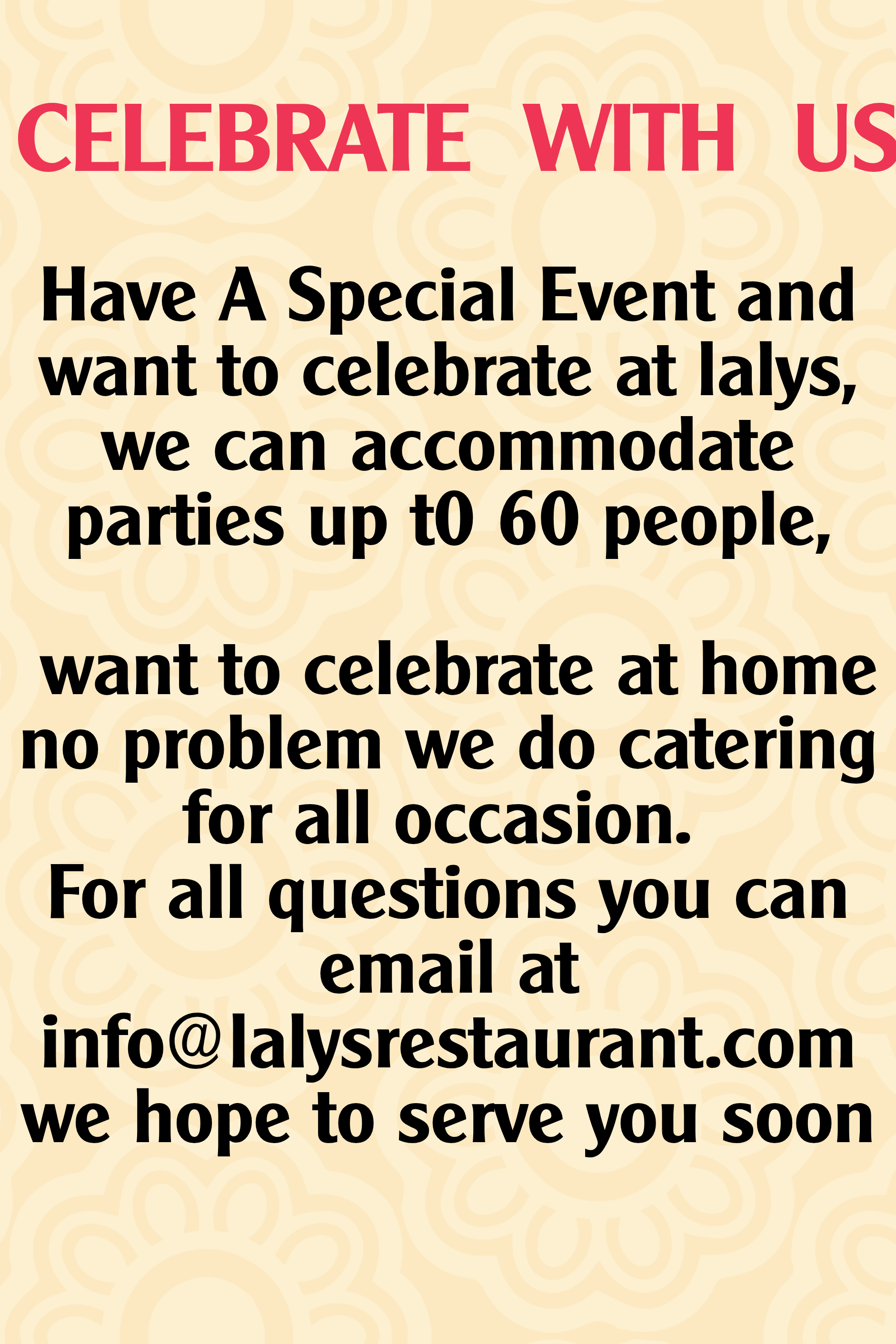 SUPPORT LOCAL RESTAURANTS ORDER BY PHONE (718)433-9906 info@lalysrestaurant.com lalysrestaurantny.com Scan Code To see Full Menu Pictures